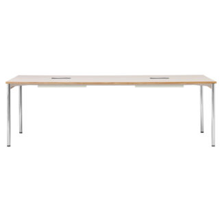 Elevating professional environments, the Co Table profiles a simple yet elegant design, creating a cohesive look when combined with the series' chairs and task chairs. Crafted with precision for contract use, it marries durability, style and functionality, presenting a versatile solution suitable for various professional settings where aesthetics and performance go hand in hand. The inclusion of decorative screws on the desk apron and solid oak trim, highlight a meticulous attention to detail, emphasizing the quality craftsmanship and sophisticated design.