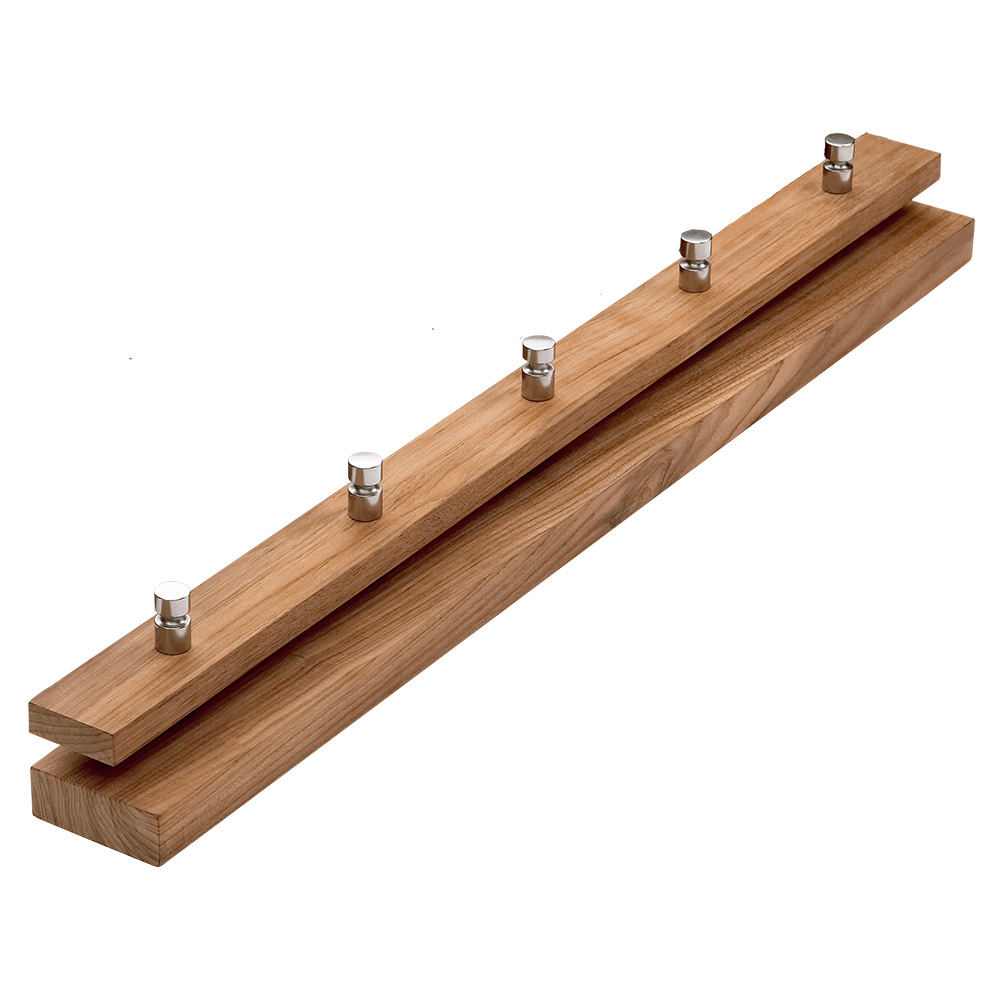 The iconic Cutter series designed in collaboration with Danish designer, Niels Hvass, is minimalistic, functional and a popular choice for hallways. Inspired by the German Bauhaus movement, the series contains many options and combinations giving a wonderful array of choice to suit every home. A simplistic coat rack with a base of wood and hooks made from stainless steel. The natural materials are long lasting and provide an easy and elegant way to hang your coats, hats, bags and scarves.