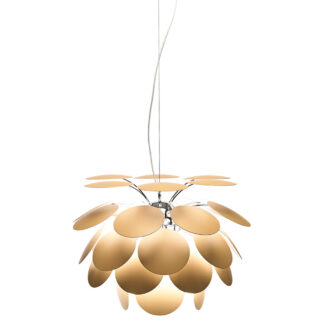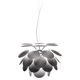 Exuberant even when turned off, the richness of the light issuing from the Discoco lamp provides direct downward illumination along with a dramatic play of lights and soft shadows.