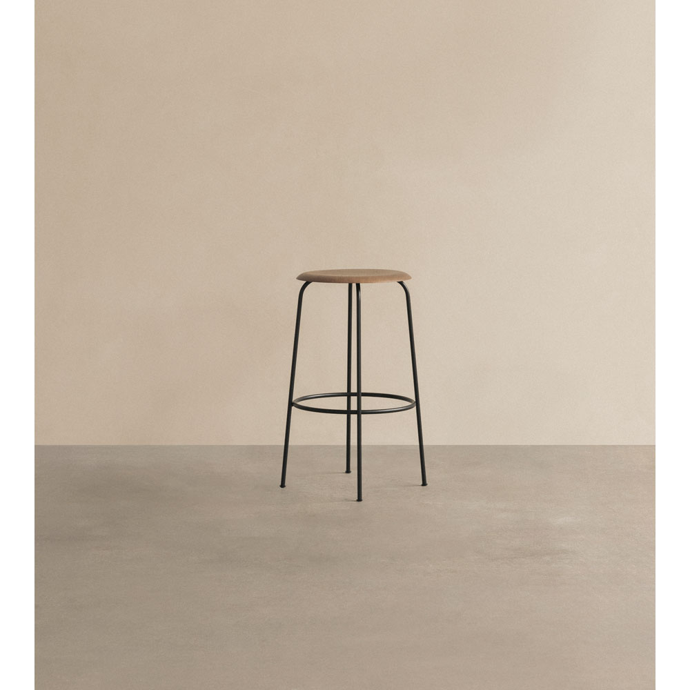 With its characteristic clean lines and sturdy base in tubular black powder coated steel the Afteroom Stool comes in three heights, making it easy to slide up to a bar, counter or table. Boasting a high standard of craftsmanship and durability for long-lasting use, in wood veneer the Afteroom Bar Counter Stool brings warmth and tactility to interiors while its sleek, minimalist profile ensures it fits seamlessly into any setting.