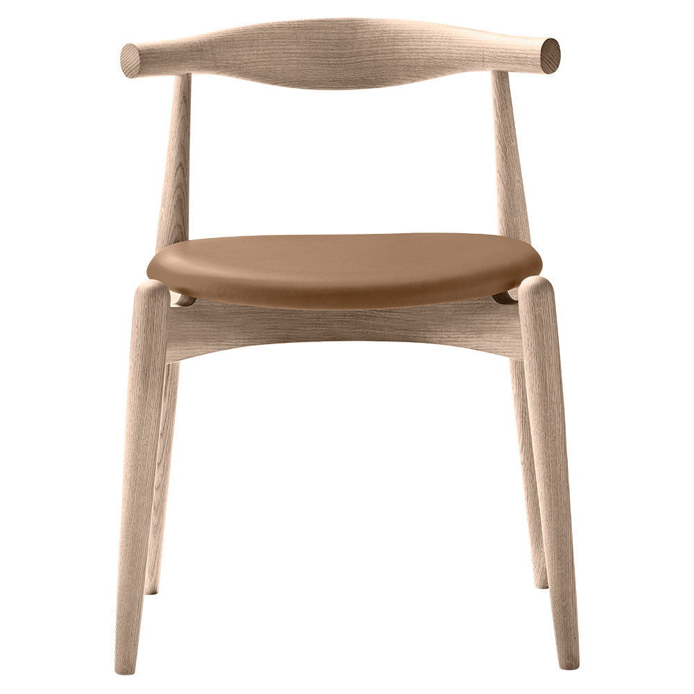 Hans J. Wegner designed the stackable Elbow Chair in 1956. After crafting two prototypes, he set the production-intensive chair design aside in his archives, where it remained for nearly half a century until it was brought back to life in 2005. The Elbow Chair's characteristic steam-bent backrest, crafted from a single piece of solid wood, provides elbow and lower back support and enables a variety of sitting positions.