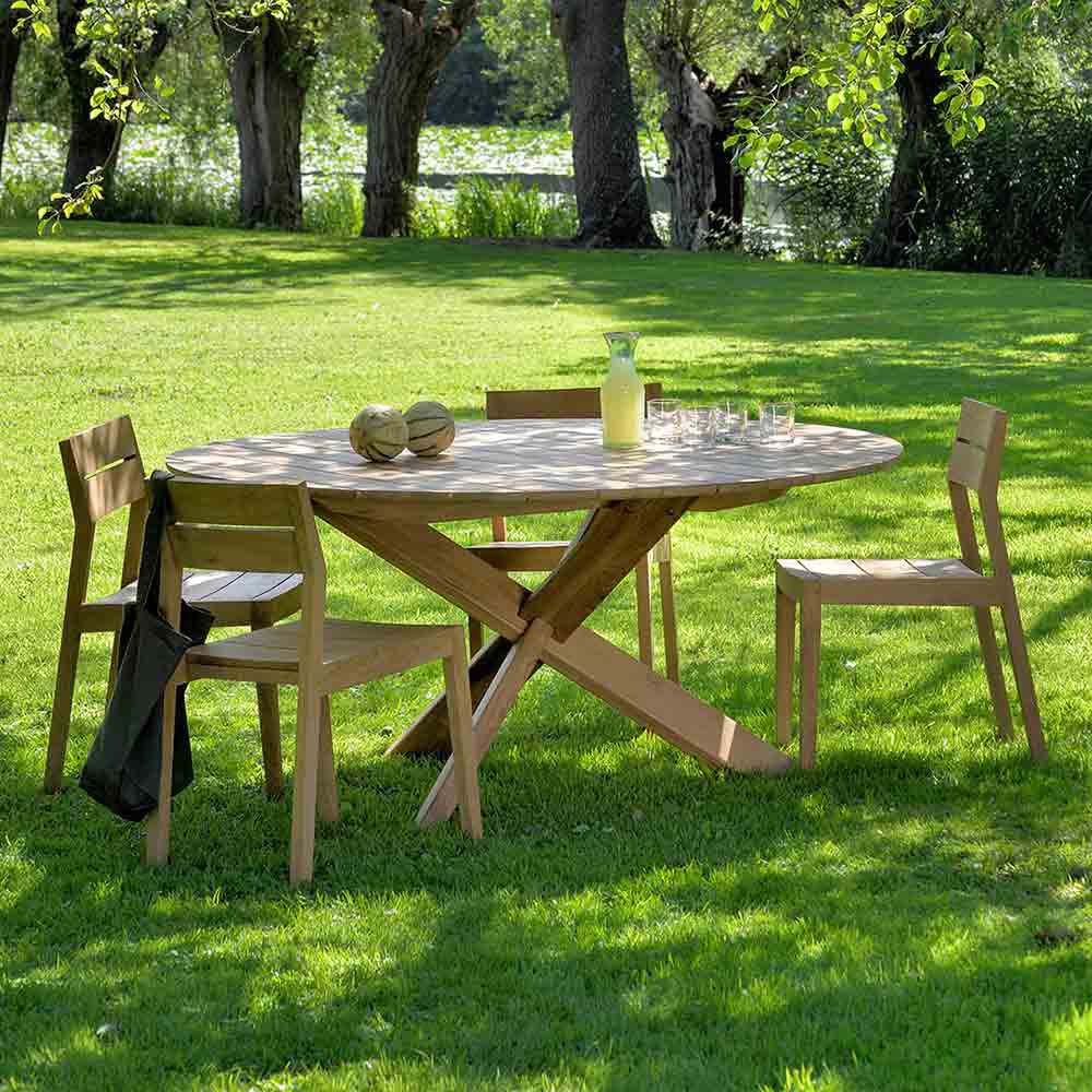 Our Circle dining table is all about inspiring your loved ones to spend a little more time at the table. Its solid legs intertwine in perfect balance, while the adapted grooved design makes outdoor life a simple pleasure.