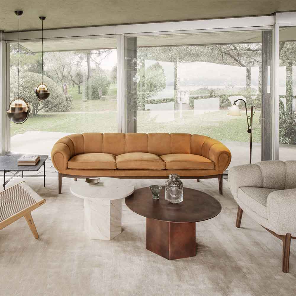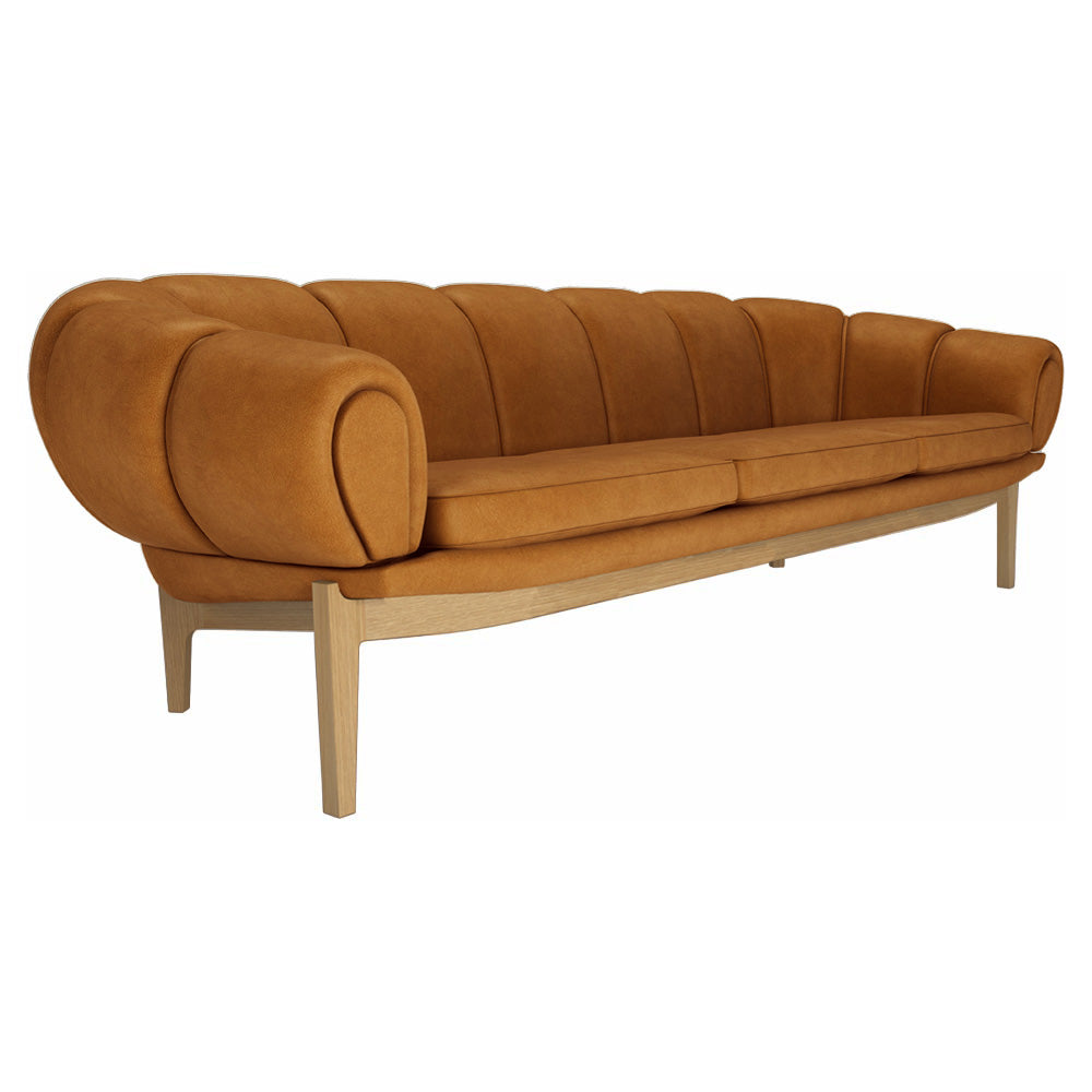 The Croissant Sofa and Lounge Chair represent an elegant and playful take on the traditional typology of the Chesterfield sofa and club chair. Wikkelso believed that a chair was not just for sitting upright, but that it should be comfortable no matter the angle at which you sit - or even lie down. He redefined these classic pieces for a more relaxed audience emerging in the optimism of the 1960s. The characteristic "croissant" form - named for its playful reference to the iconic French pastry - makes a confident statement with a sense of humor in any interior space and works well as a standalone focal piece or in combination with other bold selections.