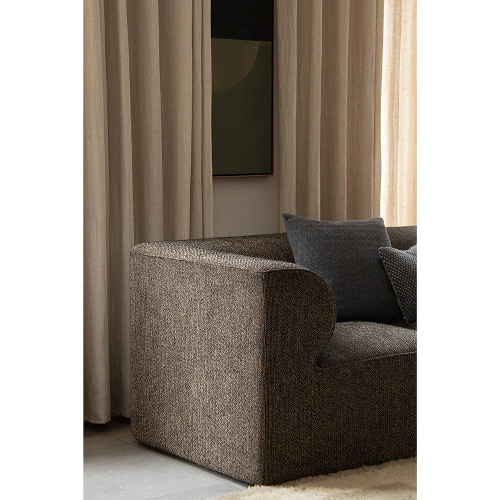 Inspired by architecture Eave Modular Sofa takes its name from "eaves" - the lower edges of the roof that overhang a wall. The sofa's distinctive detail is its internal "eaves" - curved upholstered armrests that lend the sofa its expressive character. A perfect blend of style and comfort, Eave is a generous sofa that will encourage owners to relax. The seating angle is also ideal for offices or public spaces, enabling the user to sit actively engaging with work. Figure out your own configuration to suit your space.