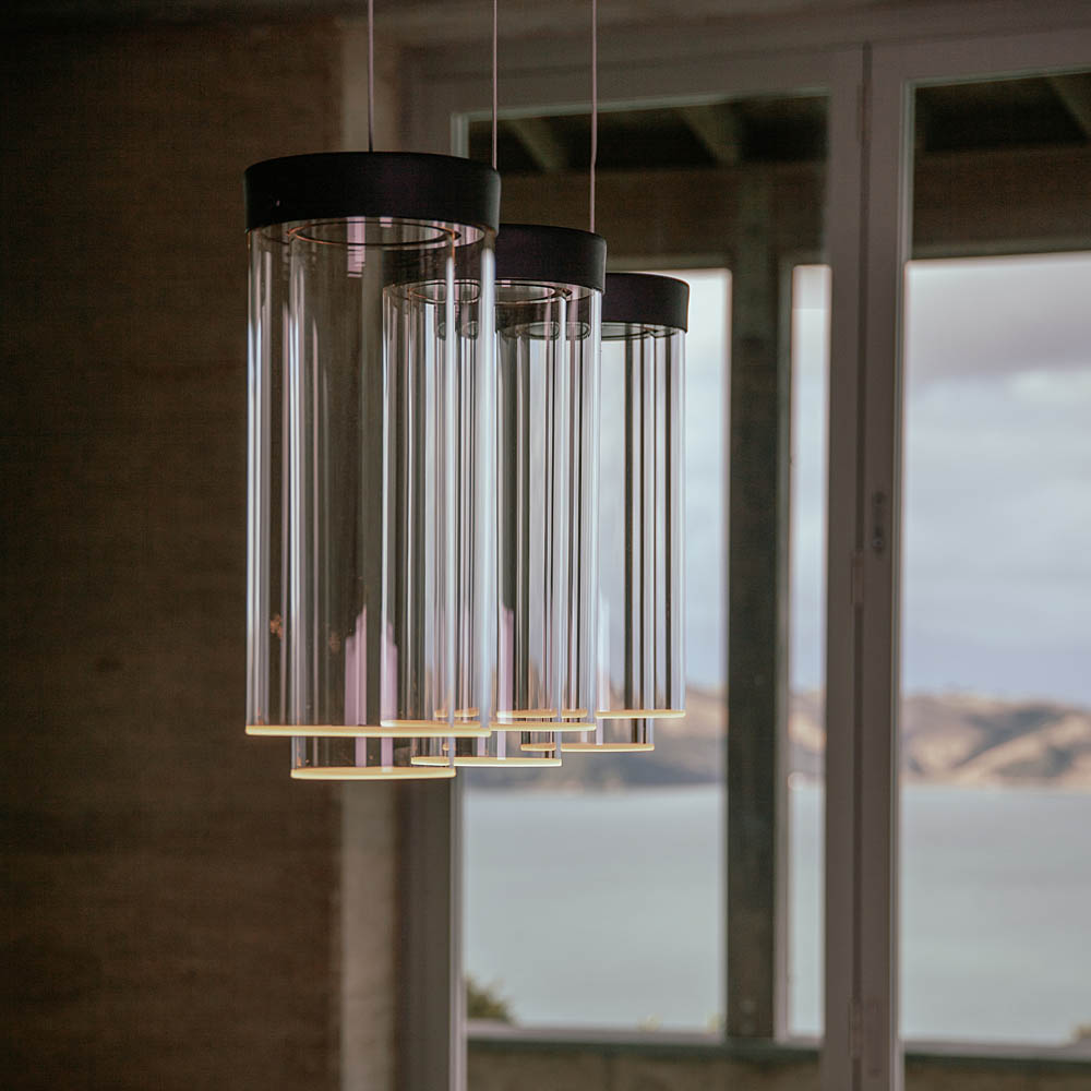 The Ghost Pendant is a minimal pendant lamp made from two pure borosilicate glass tubes. In a collision of technology and materiality, a warm LED light source projects invisibly through the glass, to spectacularly illuminate the bottom edges. The result is a delicate visual presence, with a strong source of light for the space below.