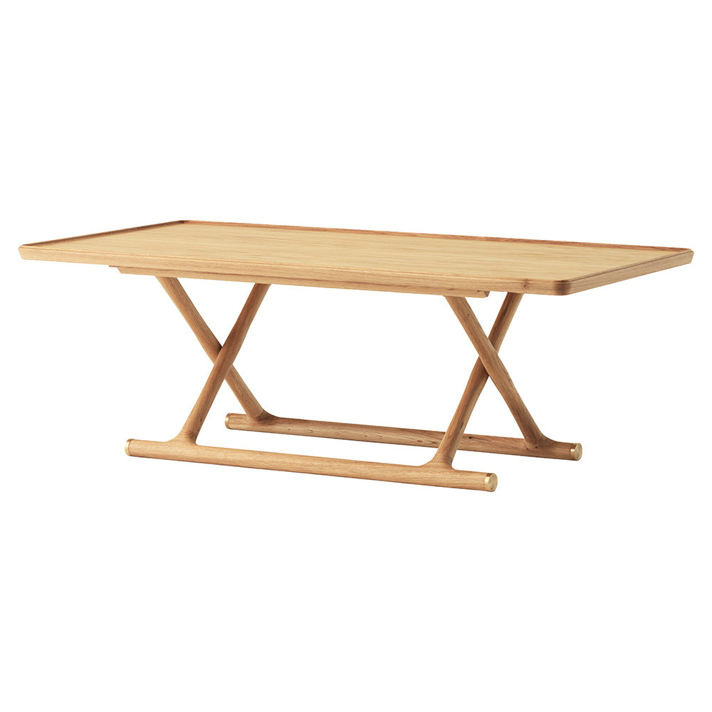 An archival design from 1941, Mogens Lassen's foldable Jager Lounge Table is reissued to a modern audience. Its name comes from the merchant for which it was created, and its design is inspired by the folding stools and beds found in Tutankhamen's Egyptian tomb. Shaped from wood - oiled oak or oiled walnut - brass fittings detail the iconic piece of Danish design. The table also features a brass plaque engraved with a unique serial number.