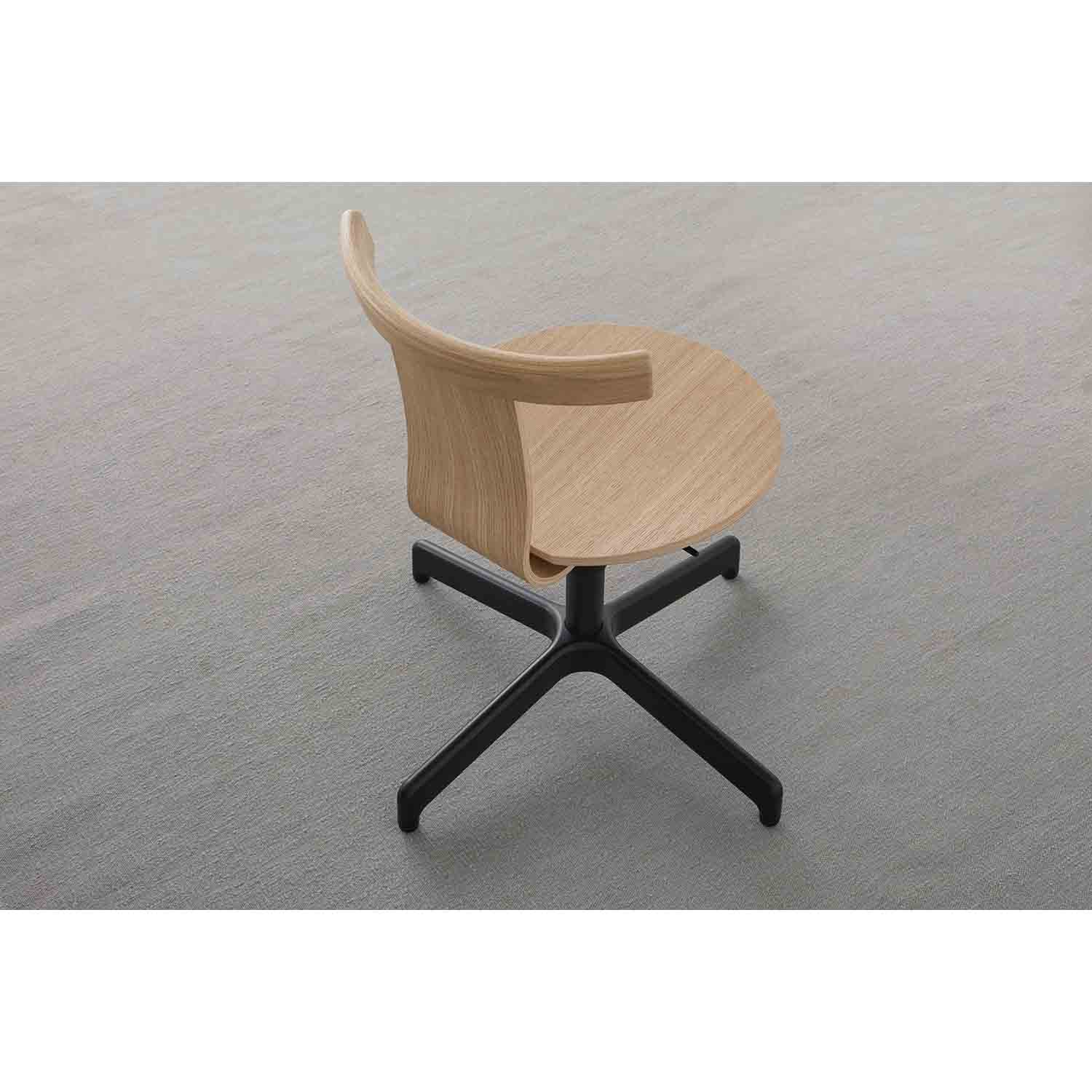 The Jiro Swivel Chair challenges traditional workplace seating by offering maximum comfort with the minimum of elements. A finely balanced oak construction with a 4-star die-cast base provides ergonomic, dynamic and responsive support in a design that is as comfortable in the boardroom as it is in a home office. With elegant simplicity, Jiro's concentric elements and low back invite shifting of posture and active maneuverability. Jiro Swivel Chair is offered in a variety of configurations, making it the ultimate seating solution for a variety of dynamic locations.