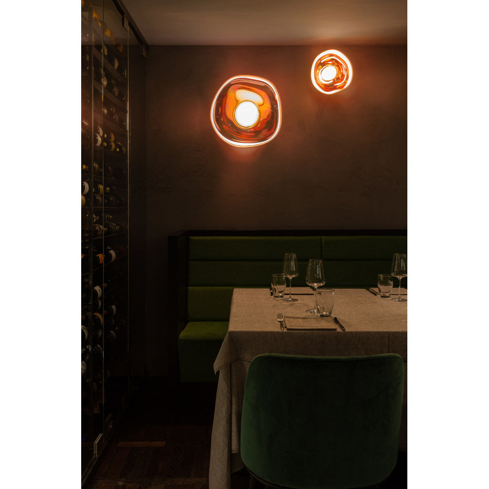 Melt is a beautifully distorted surface light now available in a new tinted white opalescent finish. By retaining Melt's organic form, we have created an opal version, which boosts its luminosity. To complement our range of metallic shades, we've introduced Opal as an alternative finish for interiors that have a more monochromatic style. Semi translucent, it maintains an ethereal ghostliness in the daylight and at night forms a perfectly illuminated orb.