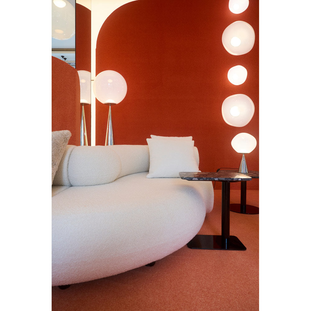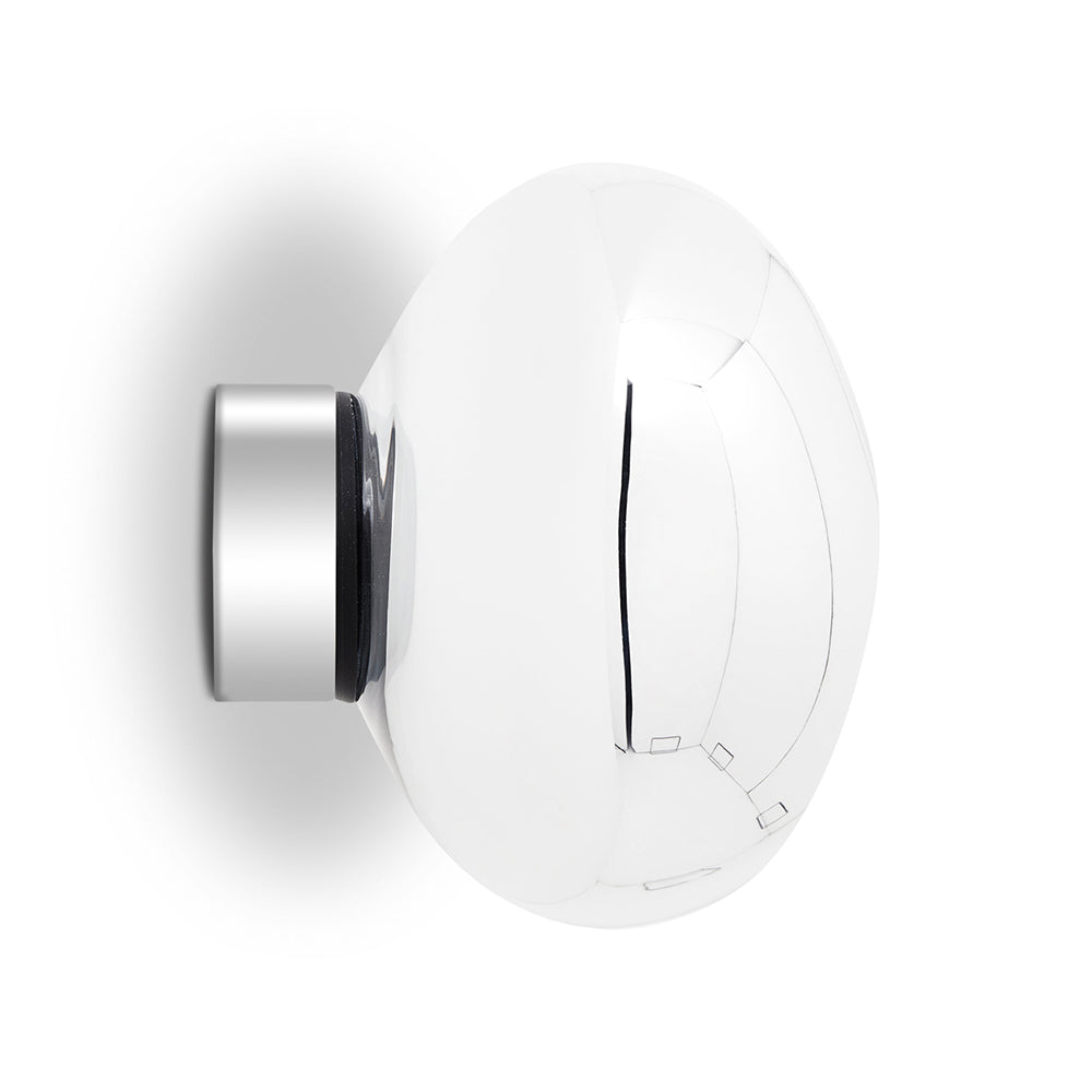 Melt is evocative of molten glass, the interior of a melting glacier or images of deep space. An imperfect, organic and naturalistic light that produces a mesmerizing hot-blown glass effect. Melt is created through a process of blow molding and vacuum metallization to achieve melted orbs with abundant and unusual luminosity that reflects and enhances its environment.