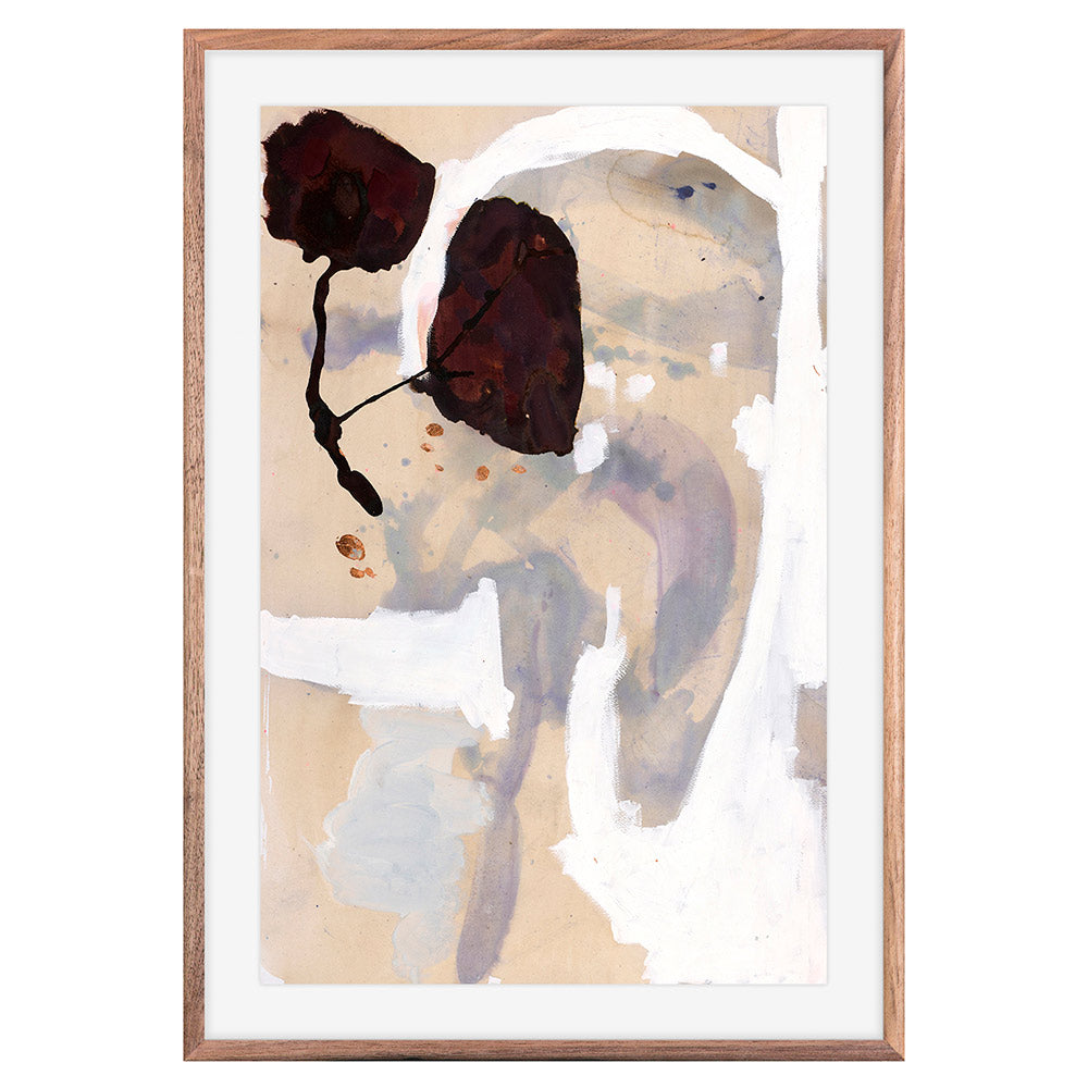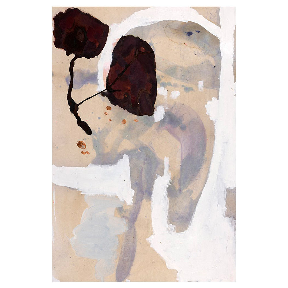 Mori Pool is part of an abstract landscape painting series honoring far away lands with delicate, transparent washes and rivulets of soft mauve, tea, and sand layered by gestural swaths of burnt umber.