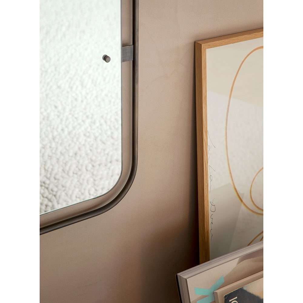 More than just a looking glass, the rectangular Nimbus Mirror with a halo-like frame is a space-defining addition to private and commercial spaces alike. Surrounded by a bronzed or brushed brass frame, held in place with decorative screws, the rectangular shape provides a full-figure reflection.
