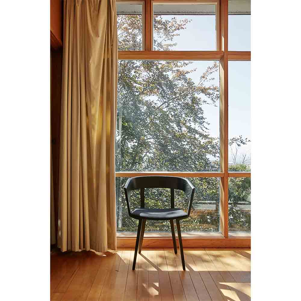 The Odin Chair started life as a commission for a series of boutique alpine properties in Niseko, Japan. Simultaneously humble and striking, the Odin Chair was designed to cross reference both Nordic and Japanese cultures. There is a structural harmony in the combination of the die cast aluminum legs, that cradle the ash veneer seat and curved backrest. Odin is available in two finishes - natural or black stained, with the option of an upholstered seat.