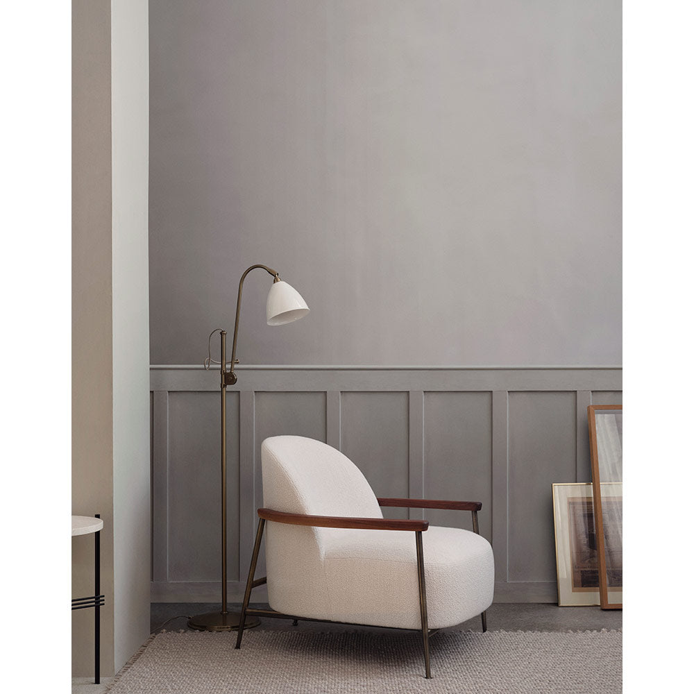 The Sejour Lounge Chair is a low-slung chair with playful proportions characterized by a deep, generous seat and a gently curving backrest set atop a slender metal frame and optional wooden armrests. This ingenious pairing of contrasting forms, weights and mate- rials results in an intriguing, almost anthropomorphic form.