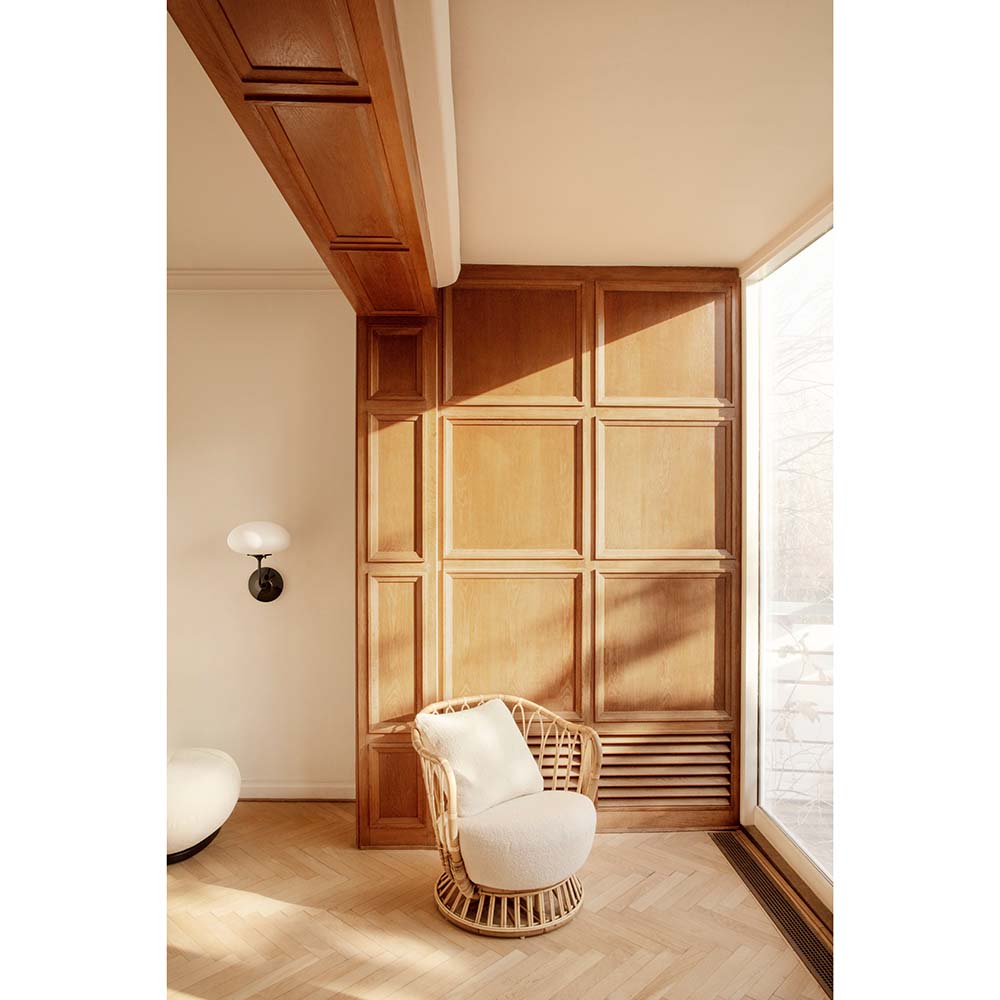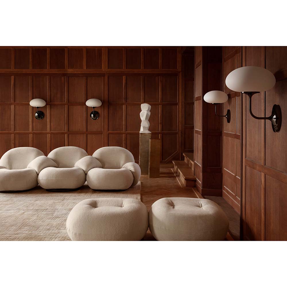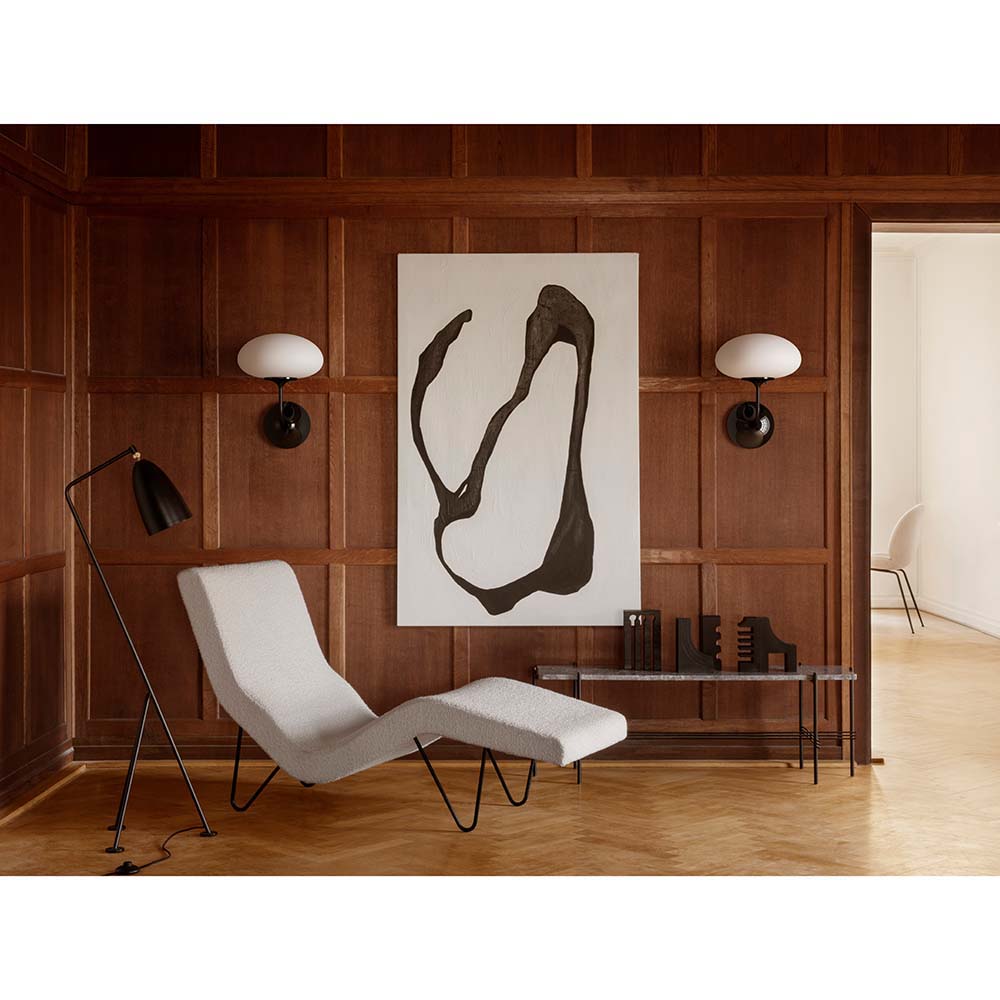 Subtle, organic forms and gentle, diffused light characterize the Stemlite Wall Lamp - a hidden gem from the space race era and now a natural addition to the GUBI Collection. Legendary designer Bill Curry's 'total look' lamp was an innovative rethinking of the traditional lamp and captured the zeitgeist of West Coast America of the 1960s. Inspired by the stems that support flower heads in nature, the Stemlite appears to grow organically out of the wall. The die-cast aluminum base holds the tulip-like steel stem which reaches outwards, then upwards to hold a gently glowing, mouth-blown frosted glass globe. A simple rotary dimmer switch gives intuitive control over the light intensity. Available in black chrome, the Stemlite Wall Lamp can be mixed and matched with rest of the Stemlite Collection, creating an atmosphere which complements both modern and traditional interiors.