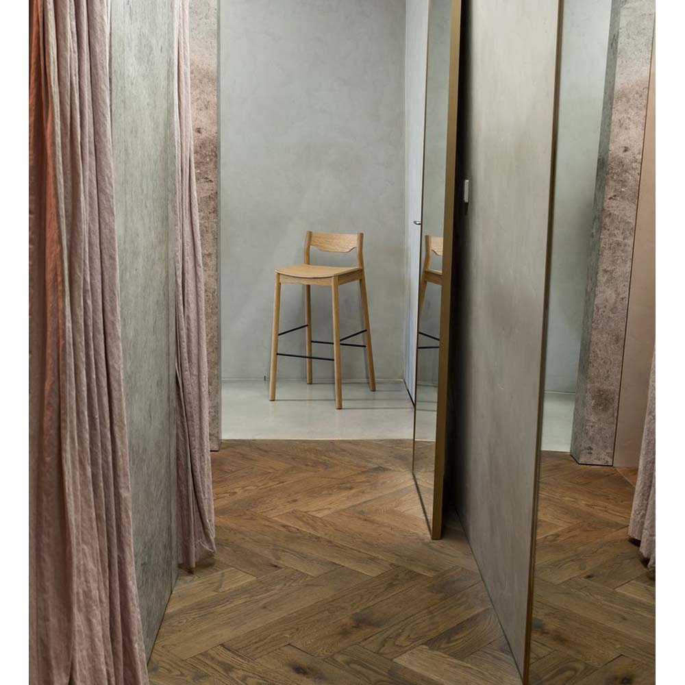 Made from solid oak, the Tangerine Stool With Back is an extension of the popular Tangerine family. Its lightweight appearance is tempered by the robustness of steel footrests, making this a solid and dependable option to compliment most bench tops.