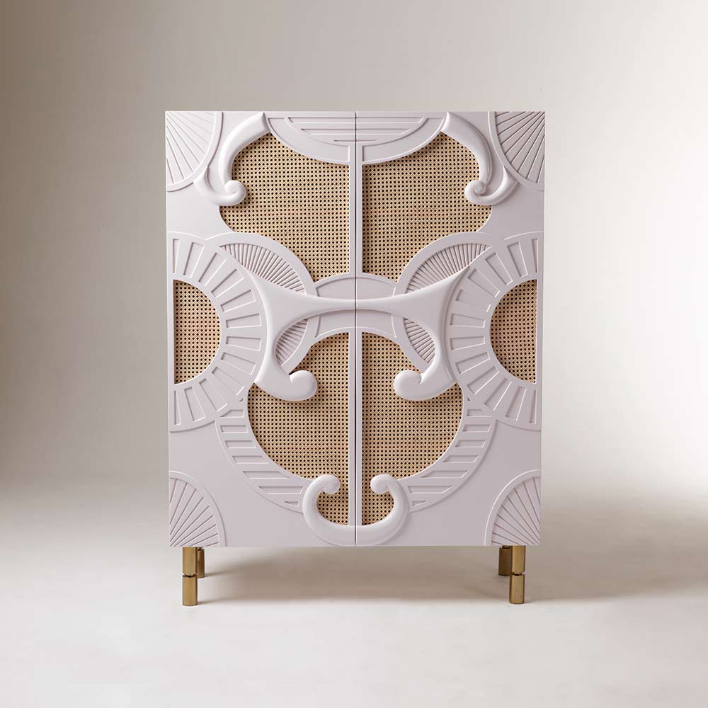Traje De Luces Bar Cabinet encompasses an exploration of delicate forms and a richness in details found while traveling through the south of Spain. Elegance, tradition and superior craftsmanship combined into a perfect fusion of materials to entice you always.