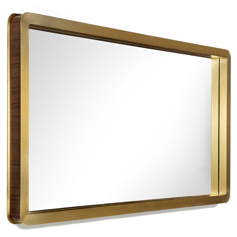 A person's Identity isn't an immediate perception but, instead, it has to be unveiled. The brass frame around the mirror means that first look at someone, when, sometimes, we wrongly believe that we already have seen it all. A more closely observation of its modern design shows exquisite details. With the exquisite combination of wood, mirror and brass, the Unveil Mirror makes a statement in interior design projects that look for a retro design with a sense of luxury.